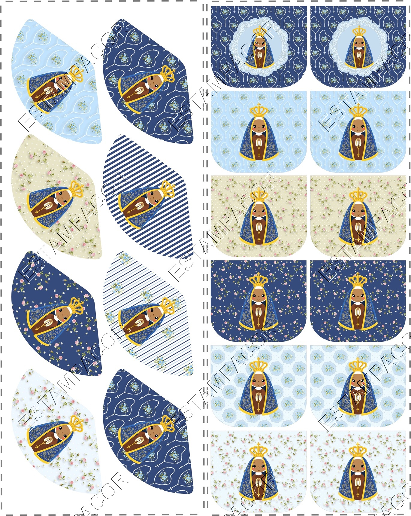 Painel de Recortes Personalizados MIX de Moldes Porta-Terço e Porta-Moedas em Tecido Digital Nossa Senhora Aparecida - Faça Você Mesma!