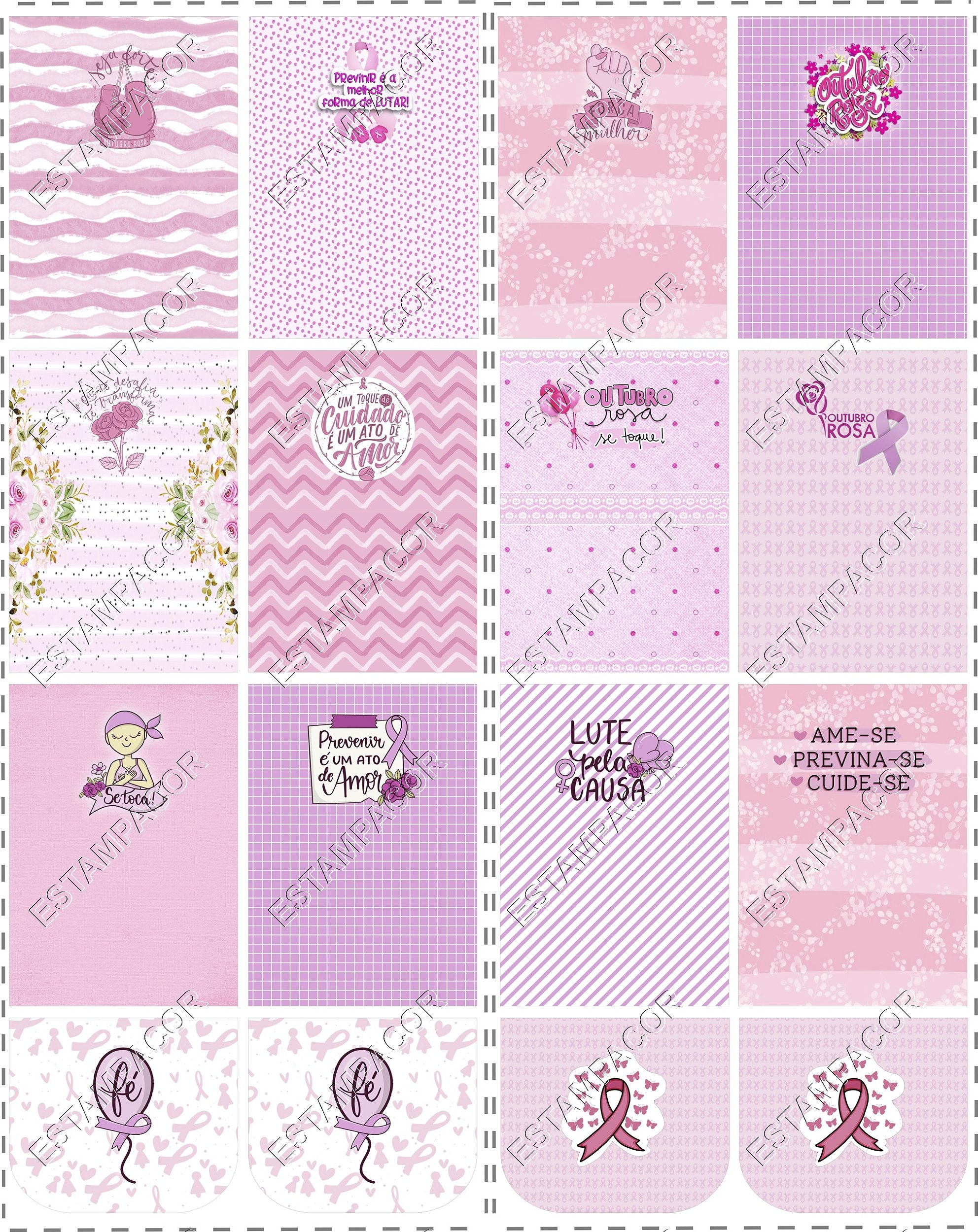 Painel de Recortes Personalizados Moldes de Porta Moedas em Tecido Digital Sublimado Outubro Rosa - Faça Você Mesma